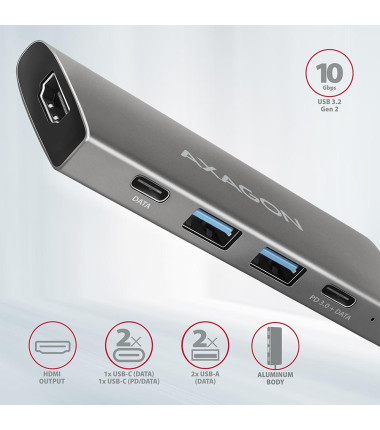 AXAGON | USB-C 10Gbps SPEEDSTER 5in1 hub (rev2.0) | HMC-5G2 | HDMI ports quantity 1
